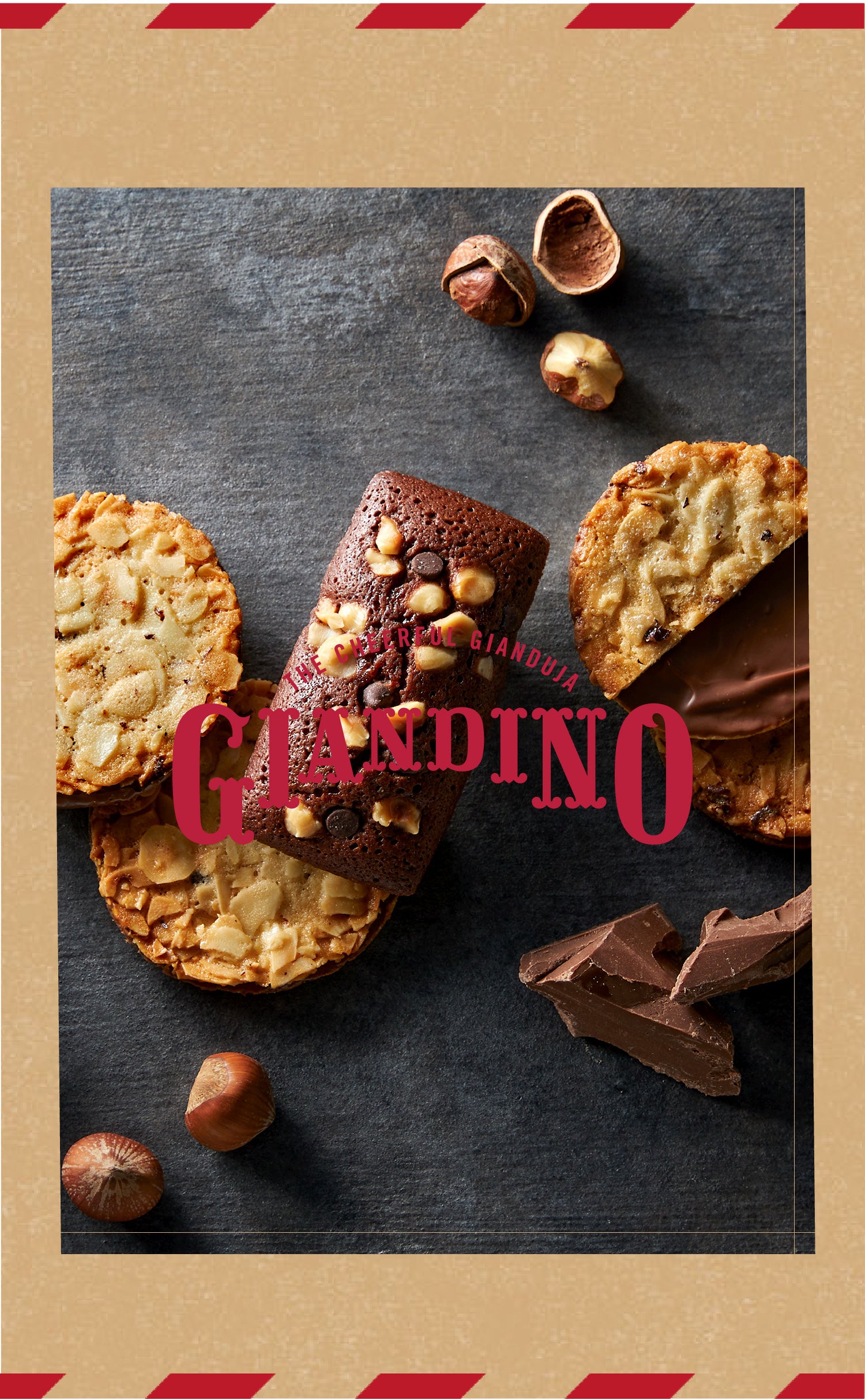 〈ジャンディーノ〉は、東京発のジャンドゥーヤ菓子専門店としておいしくて思わず陽気な気分になってしまうような、ショコラ× ナッツの風味を生かした、新しいお菓子をお届けします。